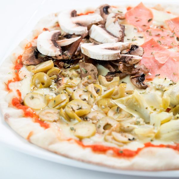 Alcachofa, aceitunas, jamón, hongos, queso,tomate